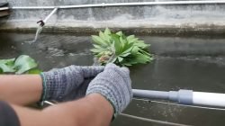 Untuk pembuatan pakan 10 kg, dibutuhkan BR1 sebanyak 2,5 kg, dedak padinya sebanyak 5,5 kg, dan kangkung kering sebanyak 2 kg.